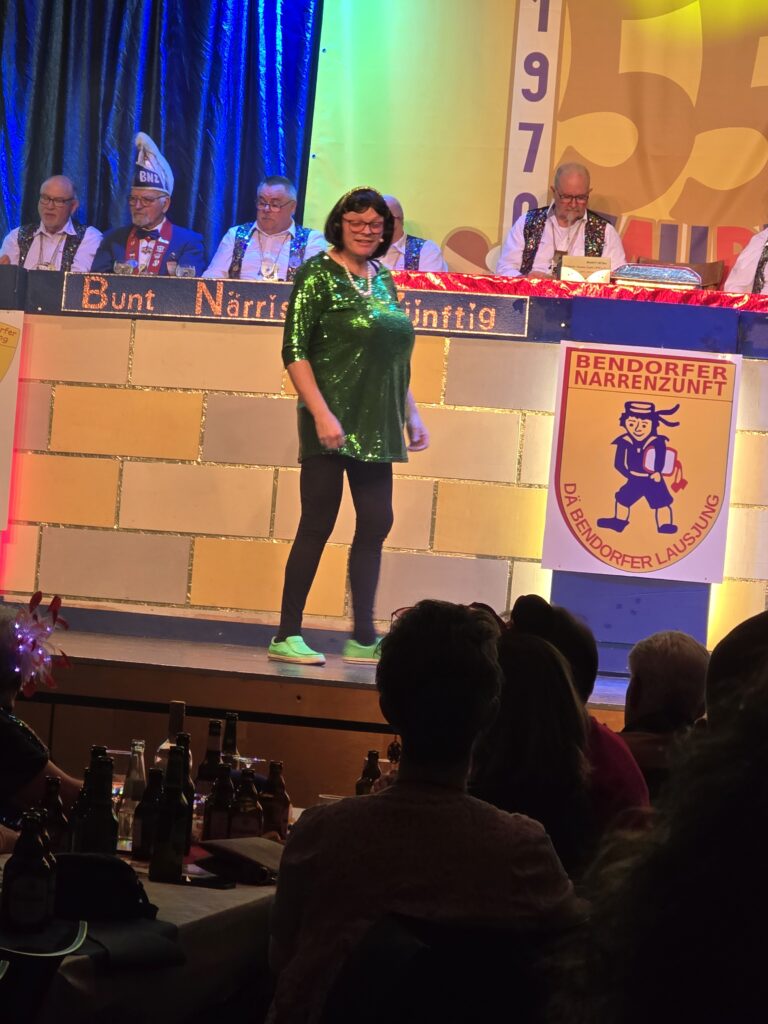 Jürgen Letschert schlüpfte als „Cordula“ in eine Paraderolle und berichtete humorvoll von einer Kreuzfahrt.Internationale Tanzträume erfüllte die BNZ Teeniegarde mit ihrer Reise nach Rio und dem Tanz „Blu-und der Traum vom Fliegen“