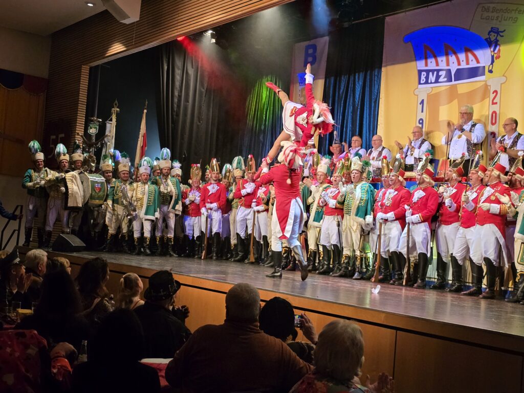 Der krönende Abschluss bildete ein großes Finale mit allen Aktiven der BNZ-Familie – ein würdiger Schlusspunkt einer rundum gelungenen Prunksitzung,die dem Publikum noch lange in Erinnerung bleiben wird.
